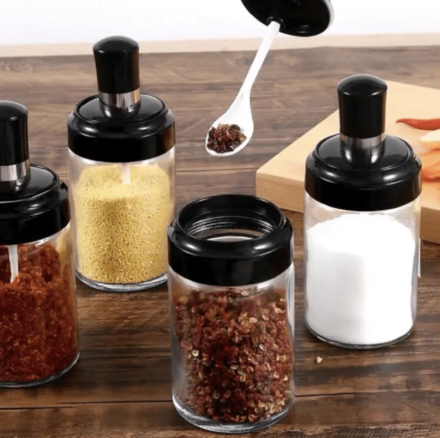 - Glass Jar Spice Airtight Containers – Organize your kitchen by organizing your spices. Put them in nice, airtight glass containers, complete with their own mini serving spoon. This will make your kitchen look cleaner, neater and more coordinated… It matches most kitchen interiors too!