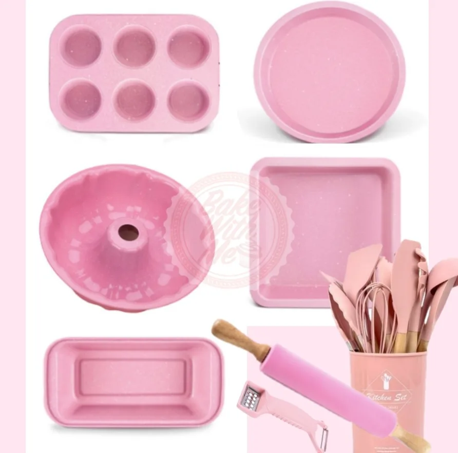 - Pink Baking Set – Look forward to baking with this girly pink baking/cooking set. Dedicated for the #TeamPink members of Home Buddies, you will surely look forward to baking with the baking set which includes square pan, round pan, muffin pan, loaf pan, tube pan, wooden rolling pin, and double side peeler. You can also opt to choose the kitchenware set which includes a tong, soup ladle, slotted spoon, slotted turner, spoon, spatula, whisk, silicone brush and pasta server. Life is indeed pink!